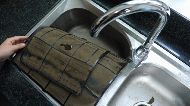 步骤5、轻轻的用手网上一推,记得是一个框有2个地方固定,需要2边都要向上推动。取下过滤网。